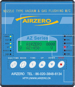• 時間 - 按時間設定按鍵,可依次轉換為:真空1、真空2、氣體1、氣體2、粘合、冷卻、AIRZERO